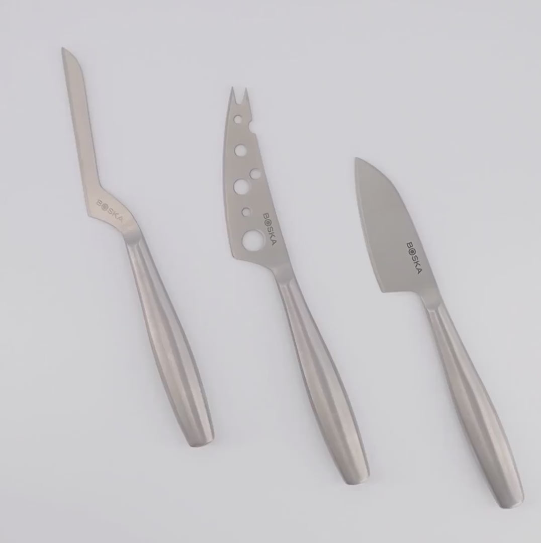 Ostahnífasett er hreinlega skylda að eiga til á öllum heimilum og er því tilvalin gjafavara. Þetta sett er úr Copenhagen línunni frá Boska. Varan er úr ryðfríu stáli og má fara í uppþvottavél.
